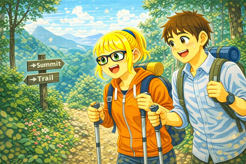 Emma og hendes hund Max går på vandretur i bjergene. De klatrer til toppen, nyder en smuk udsigt, møder en anden vandrer og ser et rådyr på vej ned.