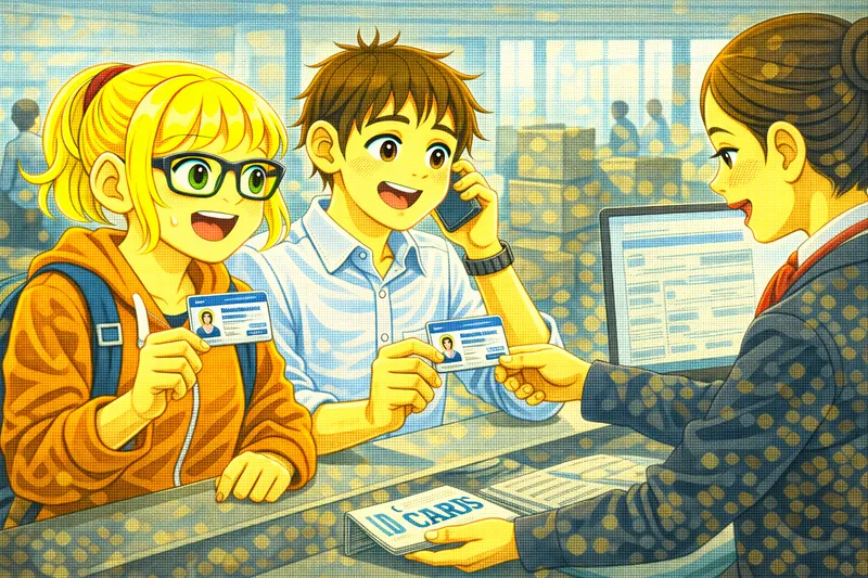 Emma, que acaba de cumplir dieciocho años, visita una oficina del gobierno con su madre para obtener su primer documento de identidad. Después de esperar en la fila, entregar los documentos, tomarse la foto y registrar sus huellas dactilares, se entera de que su tarjeta estará lista en dos semanas. Cuando la recoge, se siente orgullosa de ser finalmente una adulta oficial.