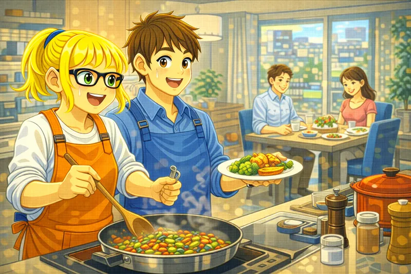 Sofia organiza o seu primeiro jantar no seu novo apartamento para seis amigos. Prepara uma refeição de três pratos: sopa cremosa de cogumelos, frango assado com ervas e legumes, e mousse de chocolate para sobremesa. Apesar de um pequeno pânico quando se esquece das natas para a sopa, tudo fica perfeito. Os seus convidados elogiam a comida deliciosa, e Sofia sente-se orgulhosa da sua cozinha. A noite termina com risos e memórias felizes, inspirando Sofia a organizar mais jantares no futuro.