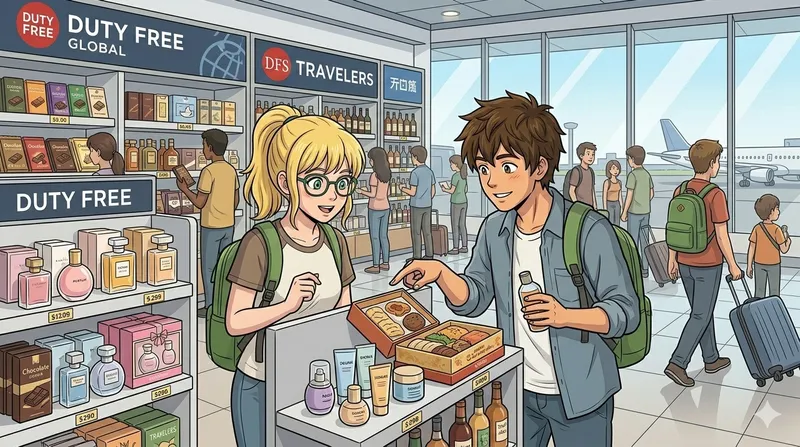 Emma och hennes man David väntade vid flygplatsgaten. Deras flyg till Spanien var försenat med två timmar. David tittade på avgångstavlan och suckade. 'Låt oss gå till taxfree-butiken', föreslog Emma. 'Vi har gott om tid nu.' De gick genom den livliga terminalen tillsammans. Taxfree-butiken var stor och ljus. Parfymflaskor glittrade på hyllorna. Chokladaskar var staplade i höga torn. Alkoholflaskor stod i prydliga rader. 'Titta på de här priserna', sa David förvånat. 'Den här whiskyn kostar tjugo euro mindre än i snabbköpet.' Emma nickade och tog upp en flaska fransk parfym. Hon sprayade lite på sin handled. Doften var fräsch och blommig. En butiksbiträde kom fram till dem med ett vänligt leende. 'Kan jag hjälpa er med något?' frågade hon. 'Ja, tack', svarade Emma. 'Jag letar efter en present till min mamma.' Biträdet visade henne ett urval av hudvårdsprodukter. David vandrade till elektronikavdelningen. Han hittade klockor, hörlurar och solglasögon på utställning. Ett par designersolglasögon fångade hans uppmärksamhet. Han provade dem och kollade sin spegelbild i en liten spegel. 'De här ser bra ut', tänkte han. Emma anslöt sig till sin man vid klockorna. 'Vad tycker du om de här?' frågade hon och höll en liten påse. Inuti fanns parfym och en fuktighetskräm. 'Bra val', svarade David. 'Och jag hittade de här solglasögonen.' 'De kostar hälften av det normala priset.' De fortsatte utforska butiken. Emma stannade vid chokladavdelningen. Hon valde en låda belgisk choklad till Davids föräldrar. 'De kommer att älska dessa', sa hon glatt. I alkoholavdelningen jämförde David olika viner. Ett rödvin från Italien såg intressant ut. Han läste etiketten noggrant. 'Den här skulle vara perfekt till vår jubileumsmiddag', sa han till Emma. De tog sina varor till kassan. Kassörskan skannade varje produkt snabbt. 'Ditt pass, tack', bad hon. Emma lämnade över båda passen. Kassörskan kontrollerade också deras boardingkort. 'Er summa blir åttiofem euro', meddelade kassörskan. David betalade med sitt kreditkort. Kassörskan packade allt noggrant i taxfree-påsar. 'Håll dessa påsar förseglade tills ni kommer till er destination', rådde hon. De gick tillbaka mot gaten med sina inköp. Ett meddelande spelades upp över högtalarna. 'Flyget till Barcelona boarding nu vid gate femton.' Emma log mot David. 'Perfekt tajming', sa hon. De ställde sig i kön vid gaten. Andra passagerare bar också taxfree-påsar. Emma kände sig upprymd inför deras semester. Shoppingen hade gjort förseningen trevlig. David tittade på sina nya solglasögon en gång till. 'Spanien, där kommer vi', sa han med ett flin.